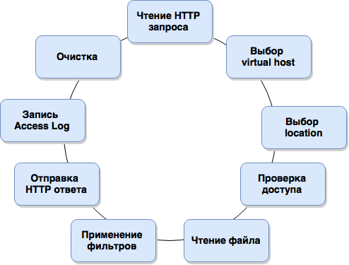 http ― конфигурация для HTTP сервераserver ― конфигурация домена (вирт. Хоста)server_name ― имена доменовlocation ― локейшен, группа URLroot, alias ― откуда нужно брать файлыerror_log ― лог ошибок сервераaccess_log ― лог запросовlocation = /img/1.jpglocation ^~ /pic/location ~* \.jpg$location /img//2015/10/ae2b5.png → /www/images/2015/10/ae2b5.png/sitemap/index.xml → /home/www/generated/index.xmlДля того, чтобы открыть файл, необходимо иметь права на чтение r самого файла